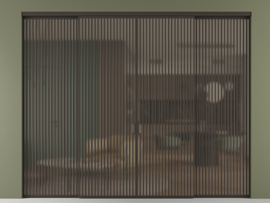 Дополнительно на раздвижную двустворчатую перегородку вдоль стены и четырёхстворчатую перегородку внутри проёма с двумя неподвижным полотнами можно установить механизм синхронного открывания — при открывании одной створки, вторая открывается автоматически.