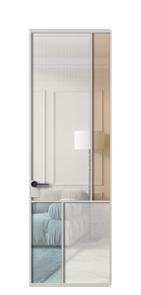 Лаконичный разделительный профиль внутренней раскладки полотна обеспечивает эстетический внешний вид конструкции и идеальную стыковку вставок из стекла.